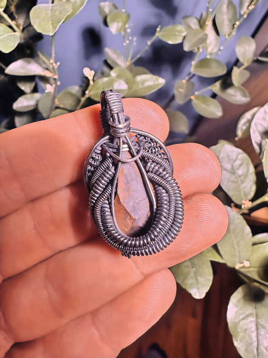 Labradorite & Moonstone Wire Wrapped Pendant with Mushroom Accents - #1