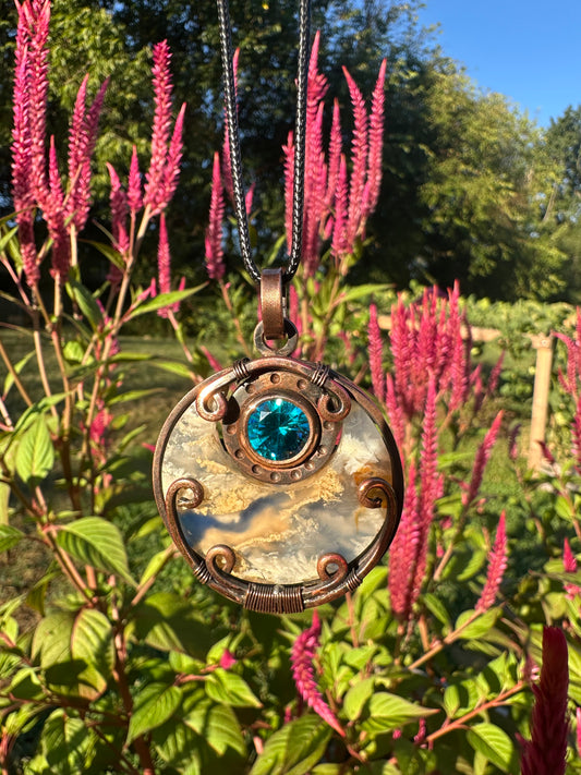 Stratosphere Whispers: Topaz & Plume Agate Doublet Pendant