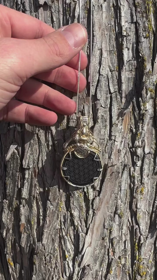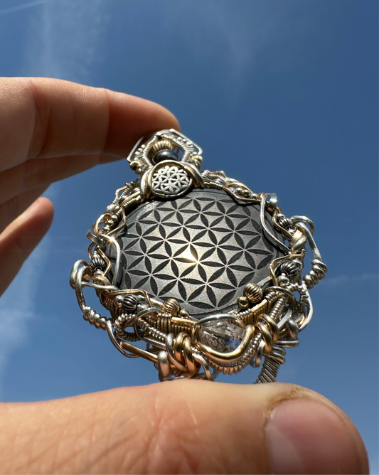 Shungite Flower of Life Sterling Silver & Gold Pendant