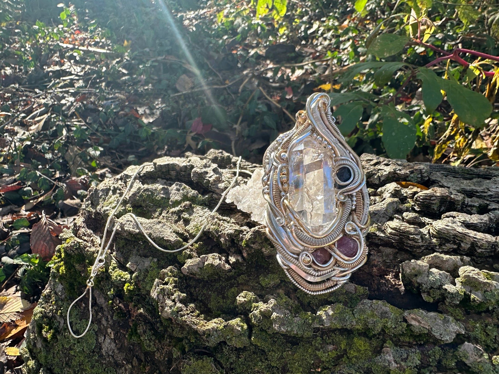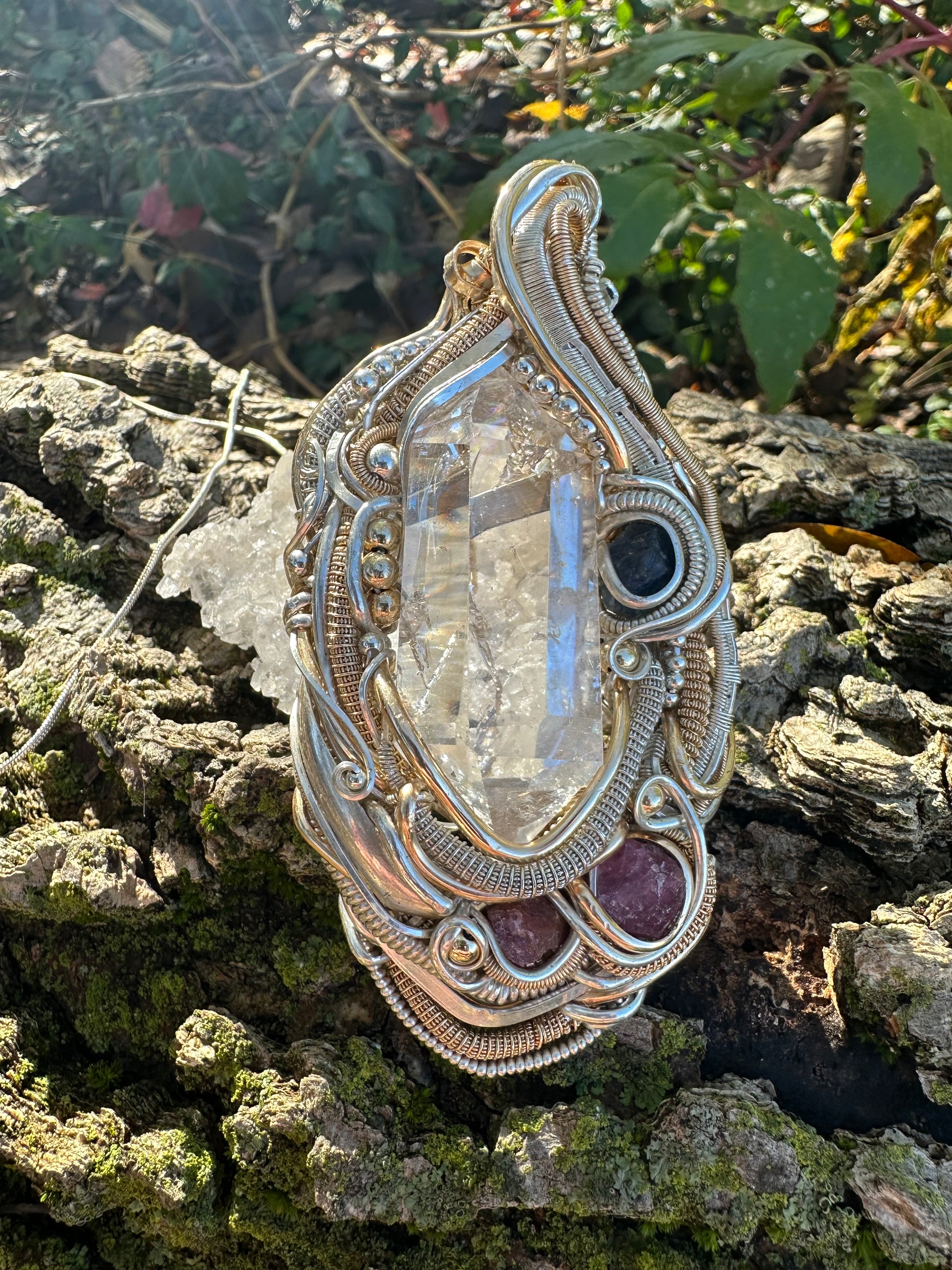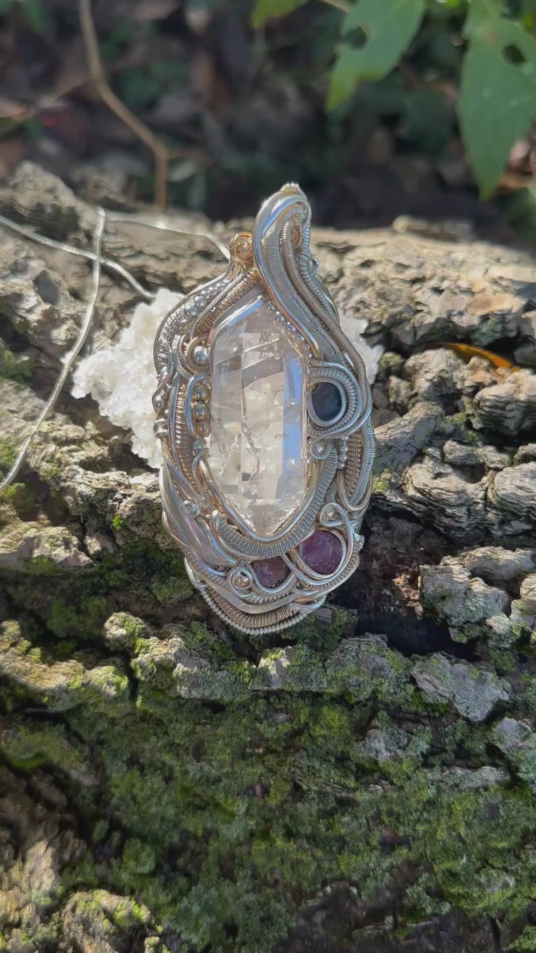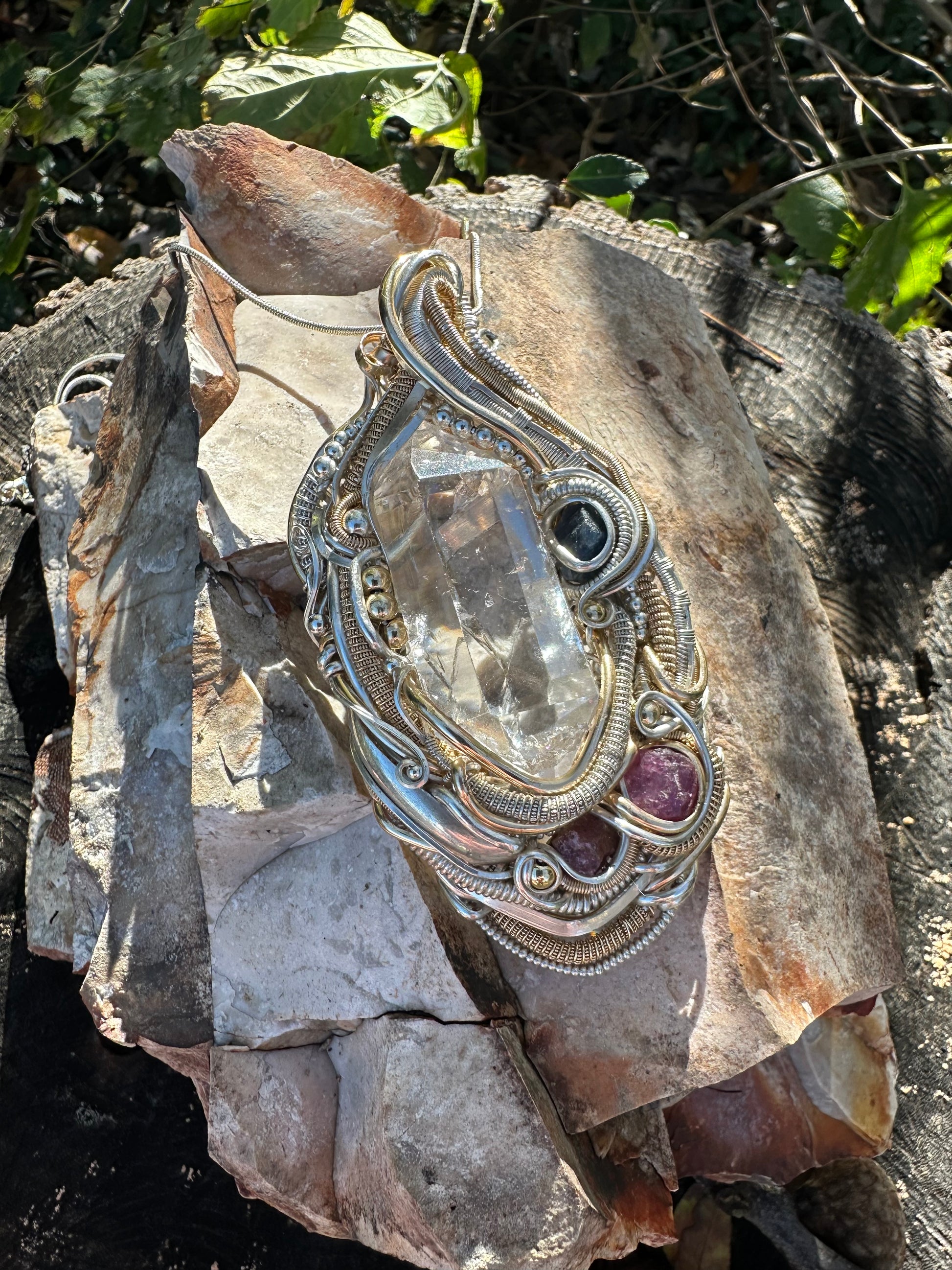 Massive Love Energy Pendant Silver & Gold Heady Quartz + Ruby, Sapphire Accents