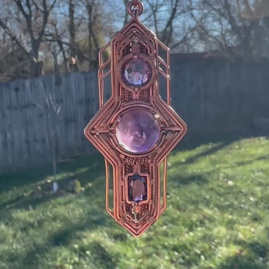 Portal Talisman 🪬 🕳️🛸👽 Copper Tech Key Pendant, Triple Amethyst Crystals