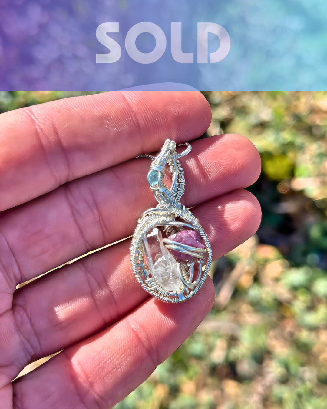 š LOVE š Quartz Diamond, Raw Amethyst & Topaz .925 Sterling Silver, Mini Pendant